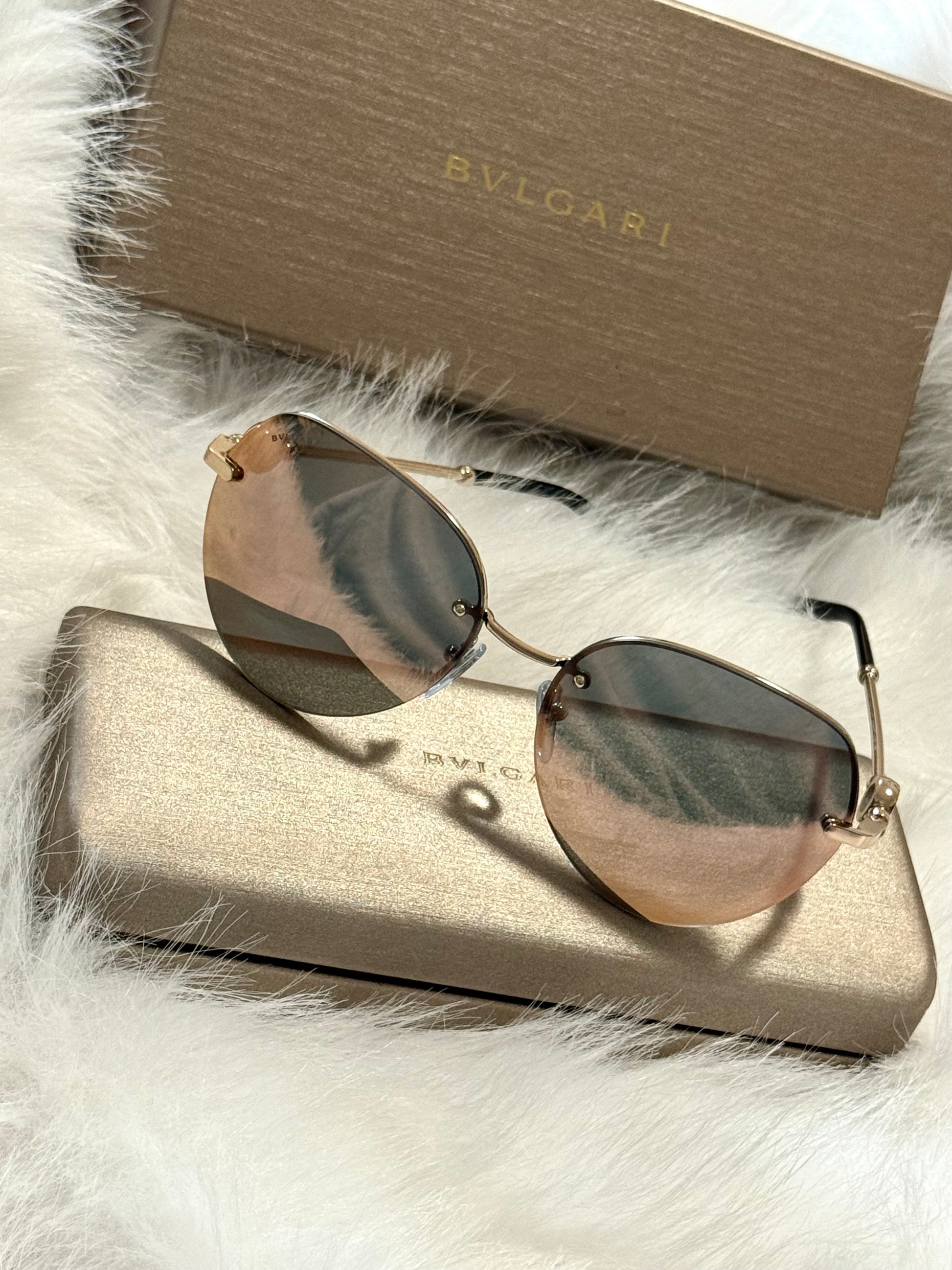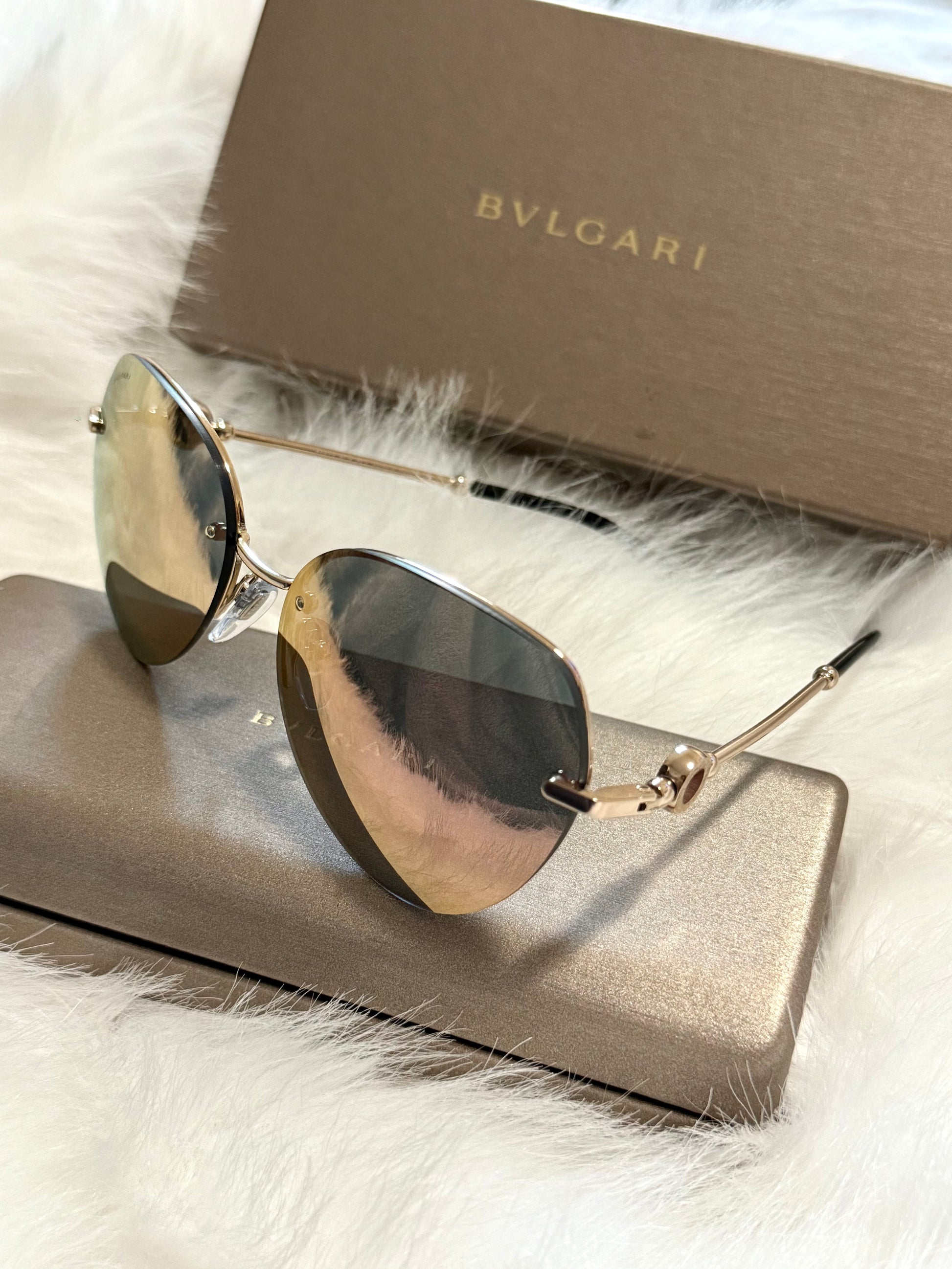 - Temple Detail: The temples feature a distinctive "flip coin" Bvlgari logo detail.
